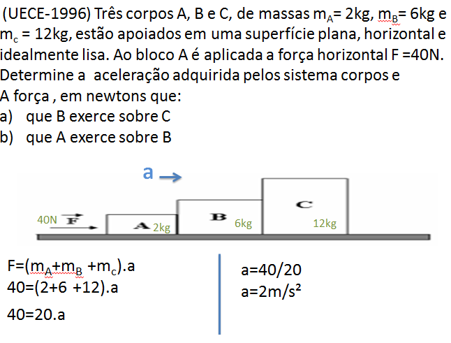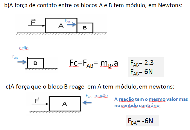 c)A força que o bloco B reage em A tem módulo, em newtons.